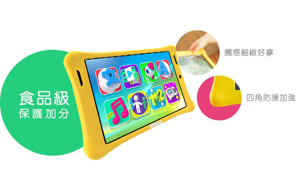 使用 3C 產品無法避免藍光的產生,Kizpad 4 低藍光保護設計,享受科技同時多一層保護;此外更附贈特製食品級保護膠套,不只好拿、防滑,更可降低意外掉落的損壞機率,保護孩子也保護荷包!