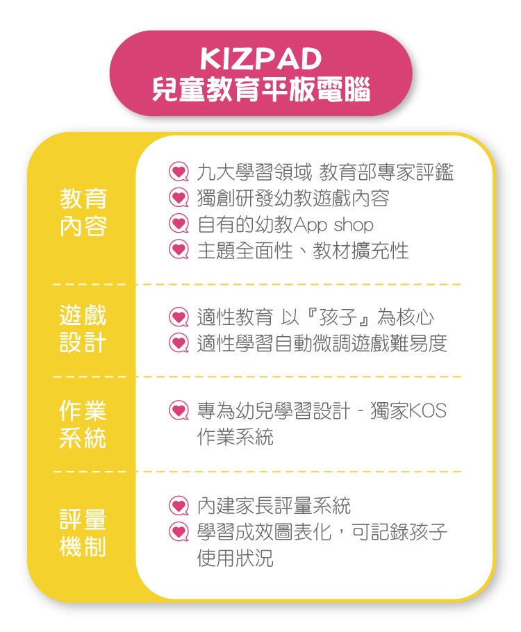 2014 年五月發售以來,已有數千位家長享受到 Kizpad 所帶來的益處;家長是孩子最好的老師,有了 Kizpad 您能教得更得心應手!